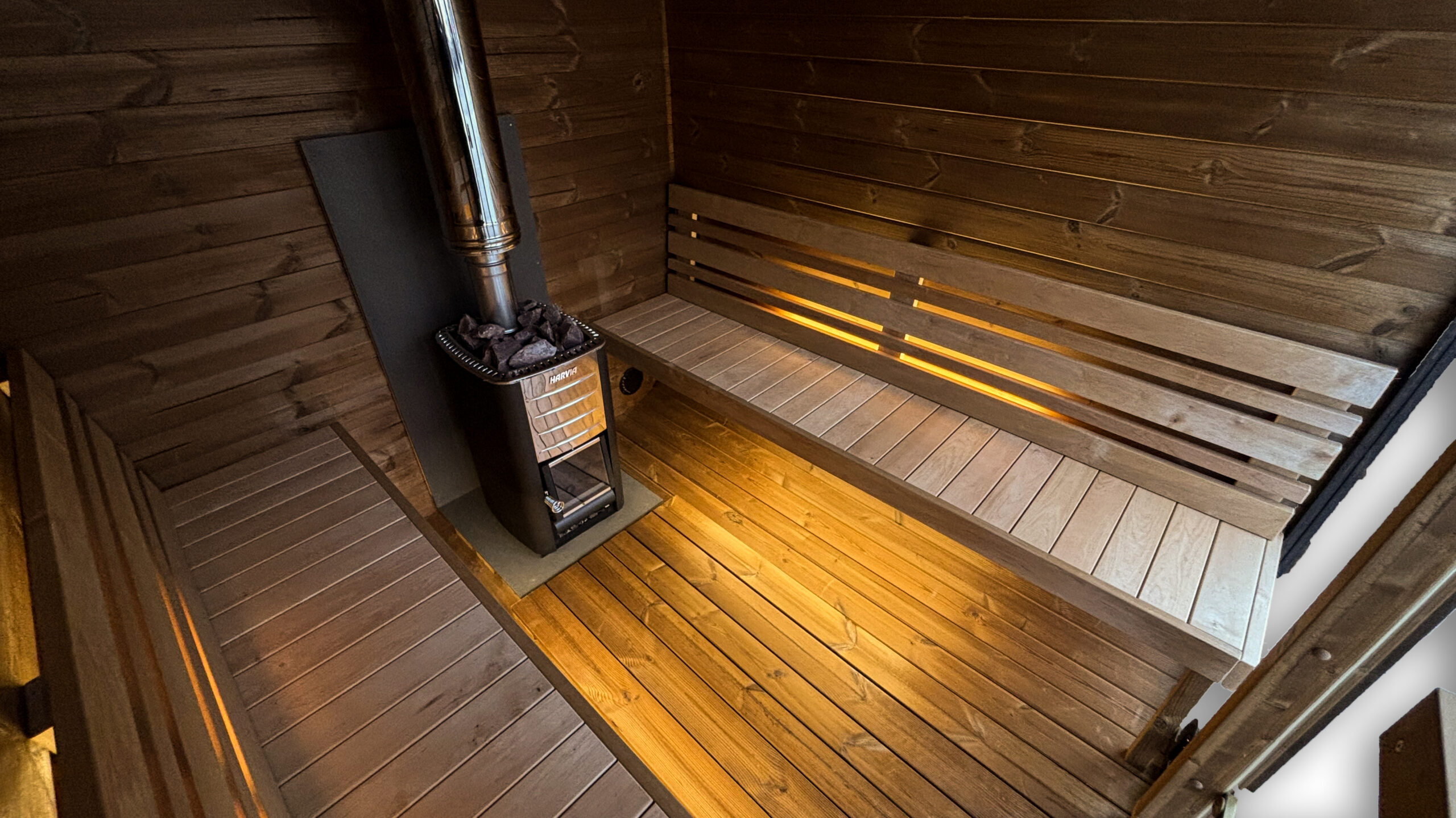See avar, ümarate nurkadega saun mahutab 4-5 inimest ja on kujundatud nagu kuubik. Saunal on mugavad lavad mõlemal pool ja seljatoed, mis võimaldavad saunatajatel mugavalt selga sirutada. Saun on saadaval kahes variandis: klaasist esiseinaga, mis pakub avarat vaadet, või klaasukse ja puitseinaga, mis tagab privaatsuse. Elegantne ja praktiline disain muudab selle sauna ideaalseks valikuks neile, kes otsivad luksuslikku ja mugavat saunaskäiku oma koduaias või terrassil.